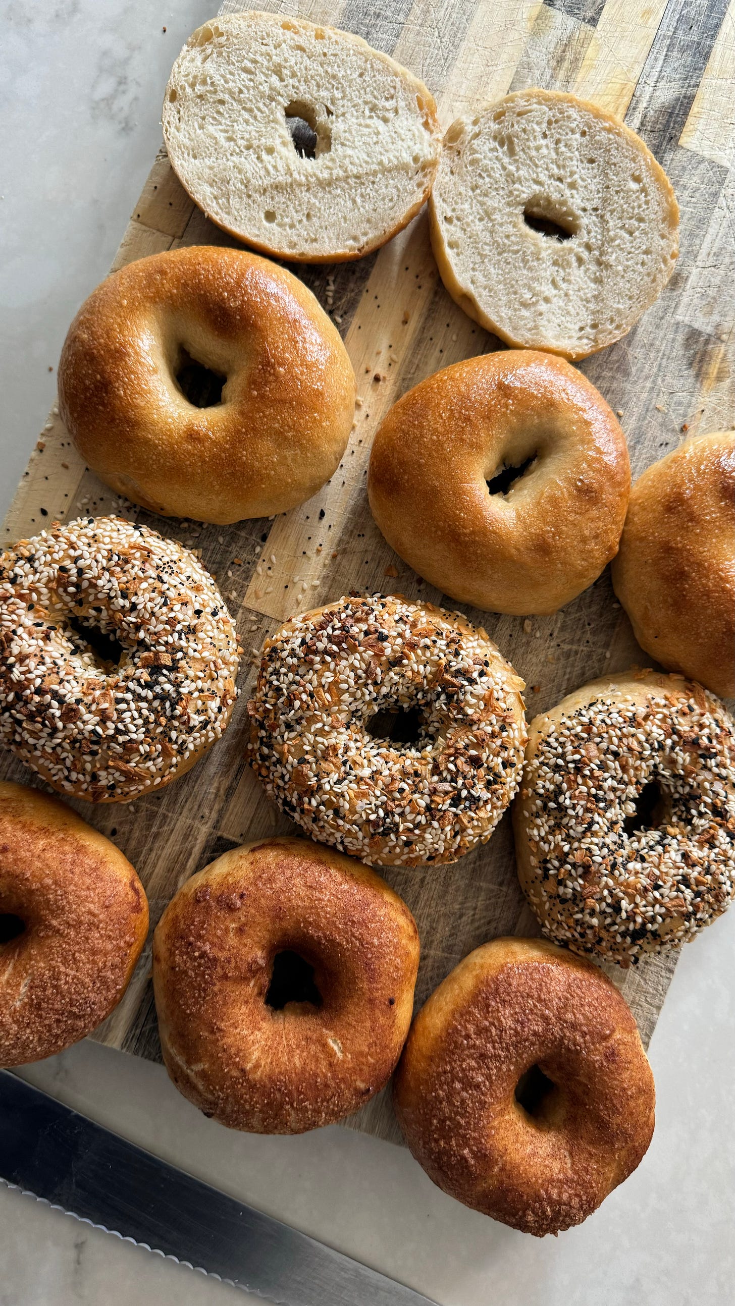 Chewy, golden, and naturally fermented bagels, perfect for breakfast or lunch sandwiches